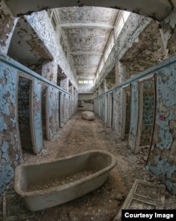 Он очень старый, построен в 1930-е годы. Там деревянные перекрытия. Часть здания в очень паршивом состоянии, там были пожары, в одном крыле обрушилась крыша. В другом, наоборот, все выглядит лучше: и ванны сохранились, и обстановка, и даже лепнина в концертном зале.
