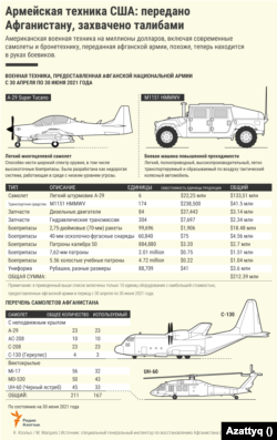 «Конституция Афганистана, демократические институты, демократические структуры, невоенная инфраструктура — всё это американцы не забрали, уезжая, — сказал он. — Эта инфраструктура осталась в Афганистане для афганского народа, и военное оборудование стоимостью в десятки миллионов долларов также принадлежит афганскому народу. Поэтому, сохраняя его, [они сохраняют] ценности, столицу и национальные интересы Афганистана».