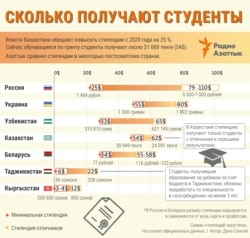 Сейчас казахстанские студенты бакалавриата, получающие образование за счет государственных образовательных грантов, получают стипендию в размере 20 949 тенге (54 доллара США), отличники получают повышенную стипендию — 24 091 тенге (62 доллара). Согласно поручению Токаева, с 2020 года стипендию студентам повысят на 25 процентов, и ее сумма составит 26 тысяч тенге (67 долларов). Студенты должны прожить месяц на эту сумму. Между тем величина прожиточного минимума в стране составляет 29 698 тенге (77 долларов).