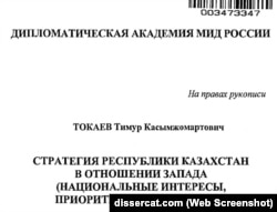 В интернете можно найти диссертацию Тимура Токаева, которую он защитил в академии МИДа в 2009 году: «Стратегия республики Казахстан в отношении Запада. Национальные интересы, приоритеты, направления». Фамилия Назарбаева упоминается в ней 112 раз на 215 страницах. Путин встречается 1 раз, Обама – 6, Буш – 14 раз. «Россия – единственный союзник Казахстана», – пишет Токаев-младший.